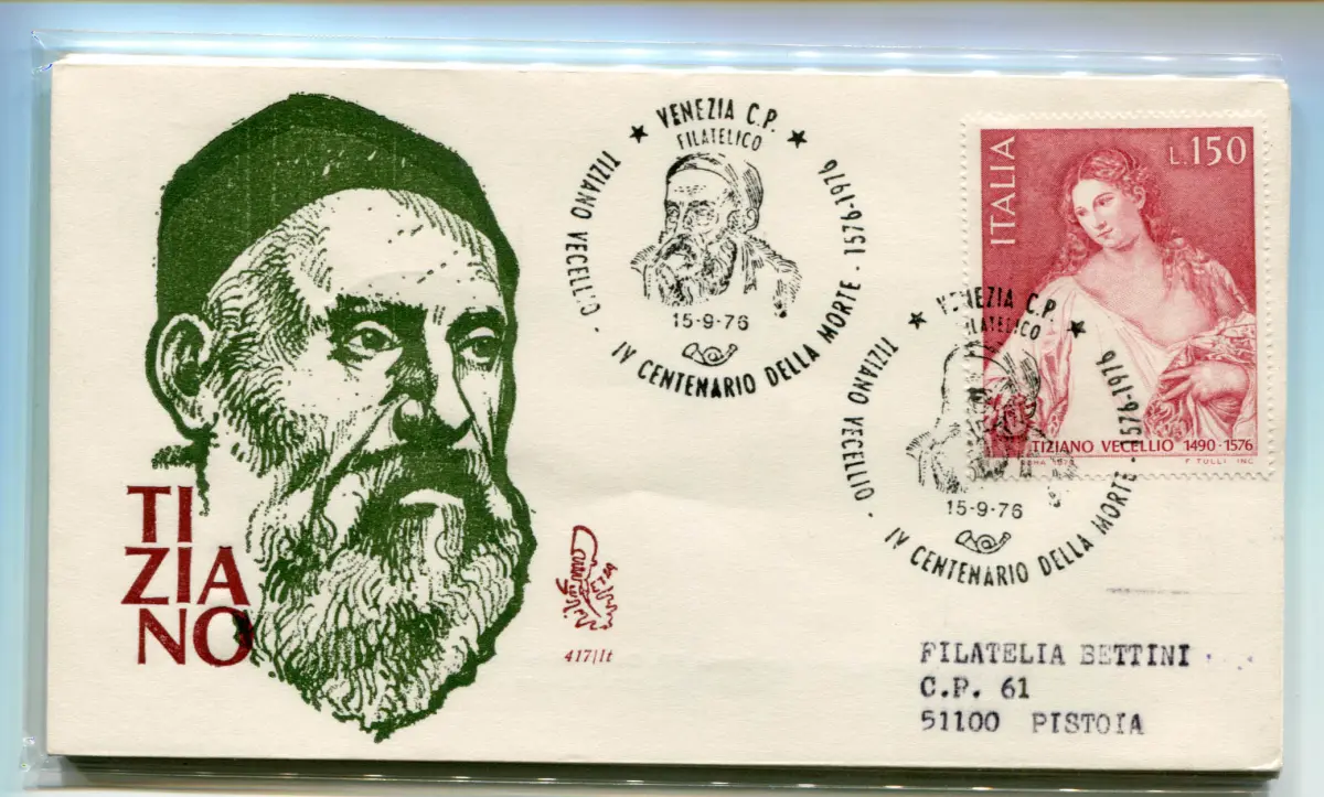 Italien FDC Venetia 1976 Tizian reiste nach Italien Italien 1976 Tizian auf FDC Umschlag reiste nach Italien mit Annullierung der Ankunft Sonderannullierung von Venedig Cod. 1409 / Venetien