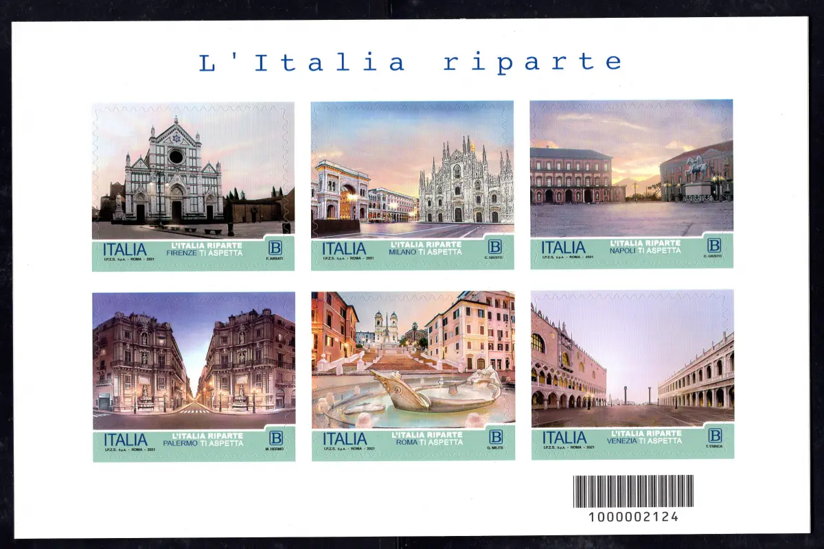 Italien startet 2021 - Bogen mit einer Auflage von nur 45.000 Exemplaren Touristenausgabe 2021 Italien geht wieder - kompletter Bogen mit sechs Exemplaren neu perfekt - Auflage von nur 45.000 Zetteln