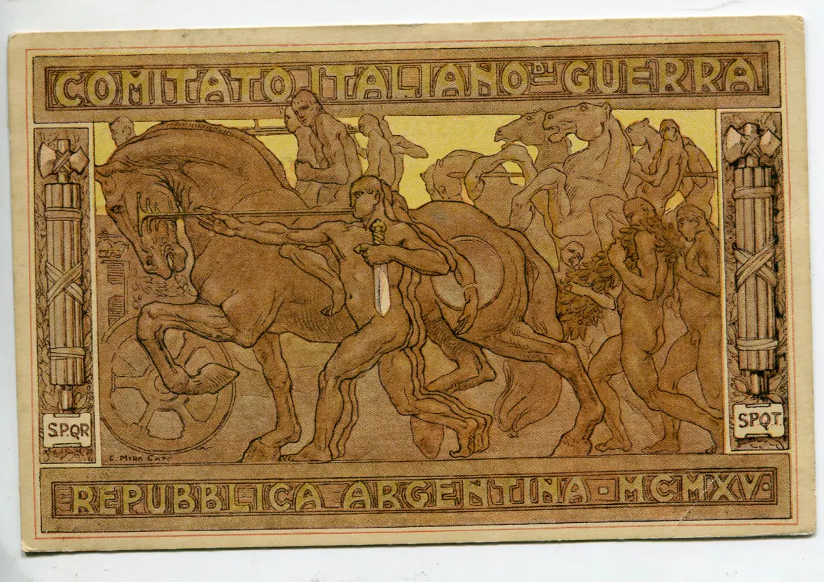 Italienisches Kriegskomitee 1915 - Argentinien Postkarte - Republik Argentinien 1915 - Postkarte Italienisches Kriegskomitee (dis. C. Mira Cato) reiste von Buenos Aires nach Mailand - Ann. Zensurgeprüft Genua Auslandspost - schön und ungewöhnlich - Nr. 1018/OUTLET
