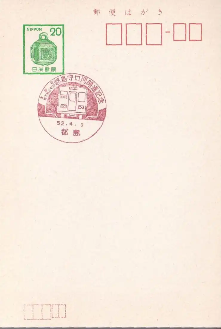 JAPAN GANZSACHE POSTKARTE mit Sonderstempel 06.04.1977 ERÖFFNUNG UNTERGRUNDBAHNSTRECKE 52.04.06