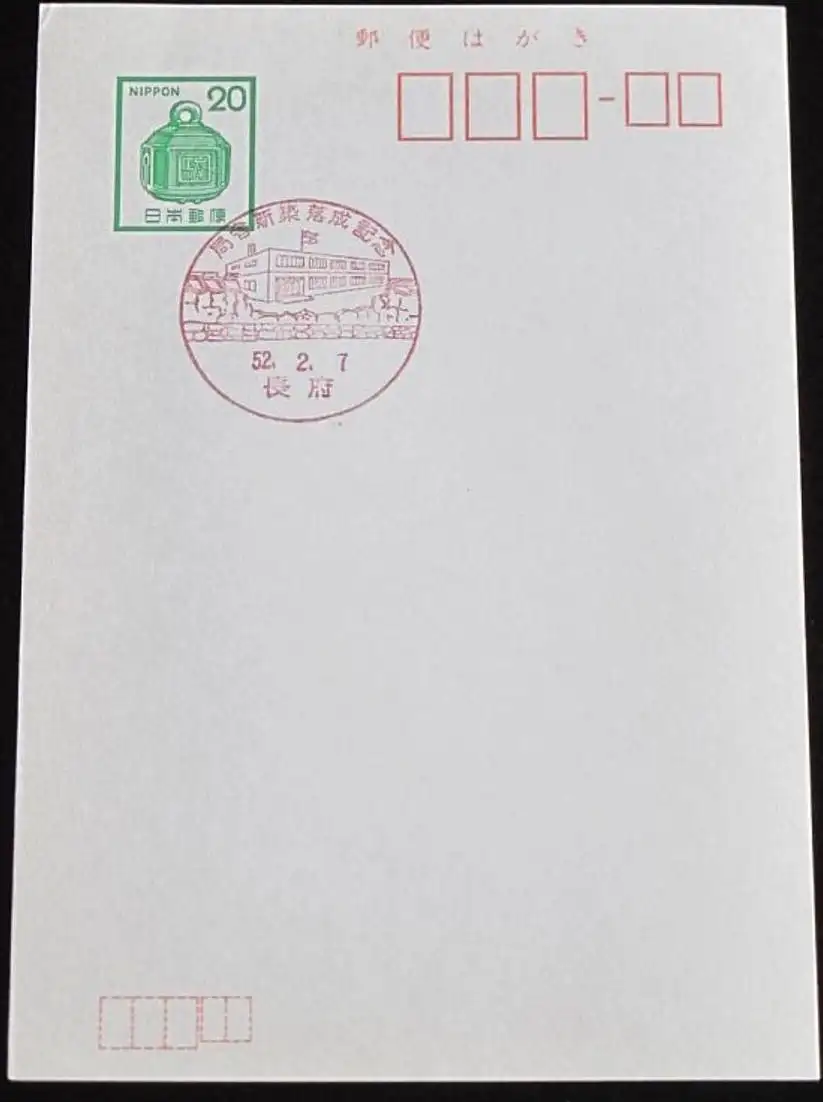 JAPAN GANZSACHE POSTKARTE mit Sonderstempel 07.02.1977 NEUES POSTAMT 52.02.07