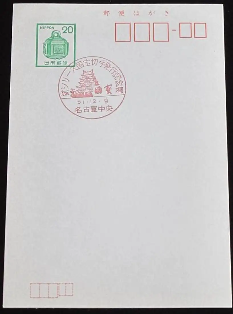 JAPAN GANZSACHE POSTKARTE mit Sonderstempel 09.12.1976 NATIONALSCHATZ 51.12.09
