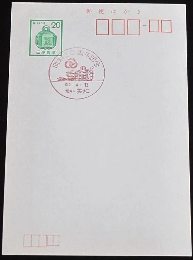 JAPAN GANZSACHE POSTKARTE mit Sonderstempel 13.04.1977 20 JAHRE STADTREGIERUNG 52.04.13
