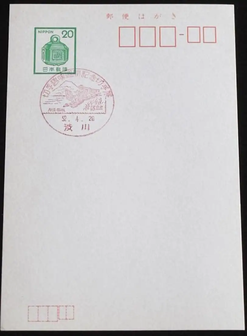 JAPAN GANZSACHE POSTKARTE mit Sonderstempel 20.04.1977 BRIEFMARKENAUSSTELLUNG 52.04.20