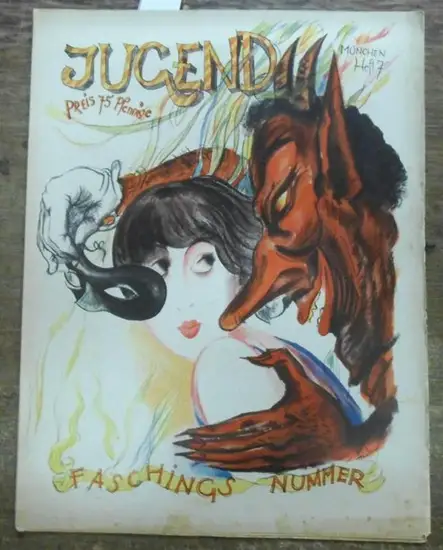 Titel: JUGEND Heft 7 - 31. Jahrgang Februar 1926. -Faschings Nummer-. Aus dem Inhalt: Garderobenfegefeuer / Arthur Thies - Kleine Bilder vom Münchner Fasching / Stanislaus Bud - Faschingslied / Faschings-Fibel / Närrische Welt