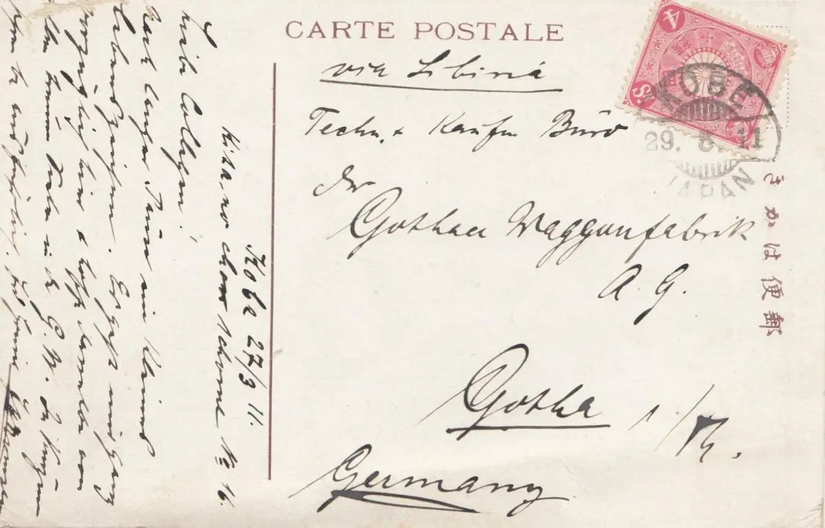 Japon 1911: post card Kobe to Gotha, colonial behavior
