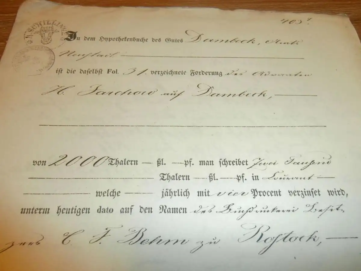 Jarchow auf Dambeck b. Neustadt , 1855-1856 , Ludwigslust - Parchim , C.F. Behm zu Rostock , Mecklenburg , komplette AkteAZ8-g/WR