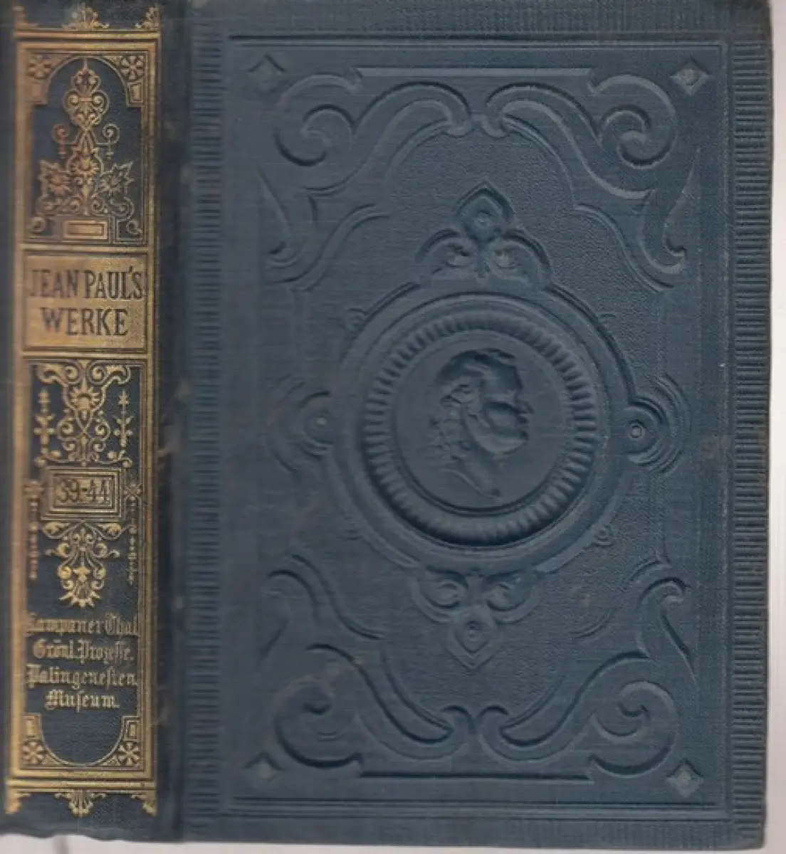 Titel: Jean Pauls Werke. 39.-44. Theil in einem Band. - Inhalt: Das Kampaner Thal oder über die Unsterblichkeit der Seele; nebst einer Erklärung der Holzschnitte unter den 10 Geboten des Katechismus / Grönländische Prozesse oder Satirische Skizzen I und II / Palingenesien I und II / Museum.