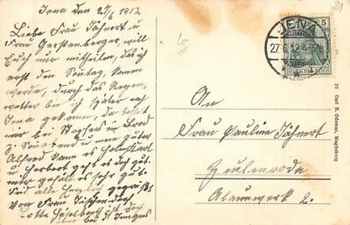 Rückseite: gelaufen 1912 von Jena