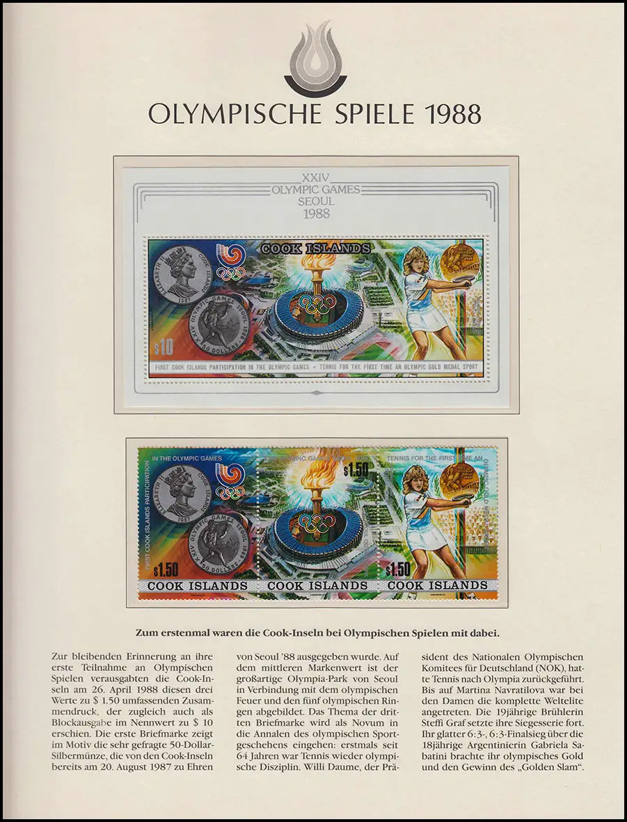 Olympische Spiele 1988 Seoul - Cook Inseln, Block + Zusammendruck Tennis Graf **
