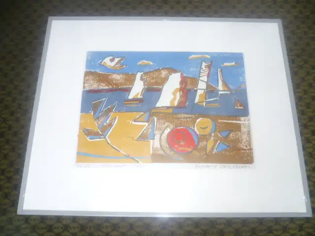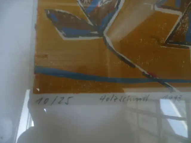 R signiert farbiger Holzschnitt , Auflage Blatt 10 von ges. 25 Auflage , datiert 1993