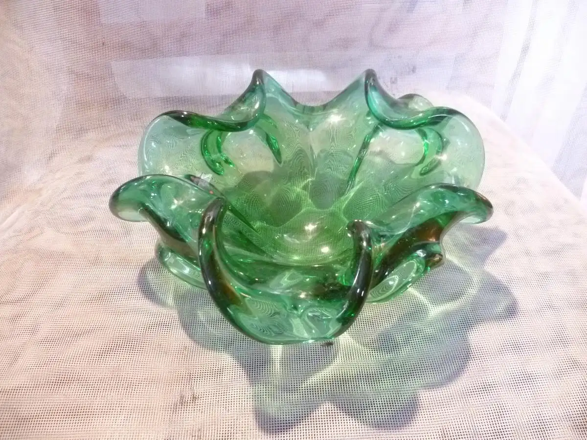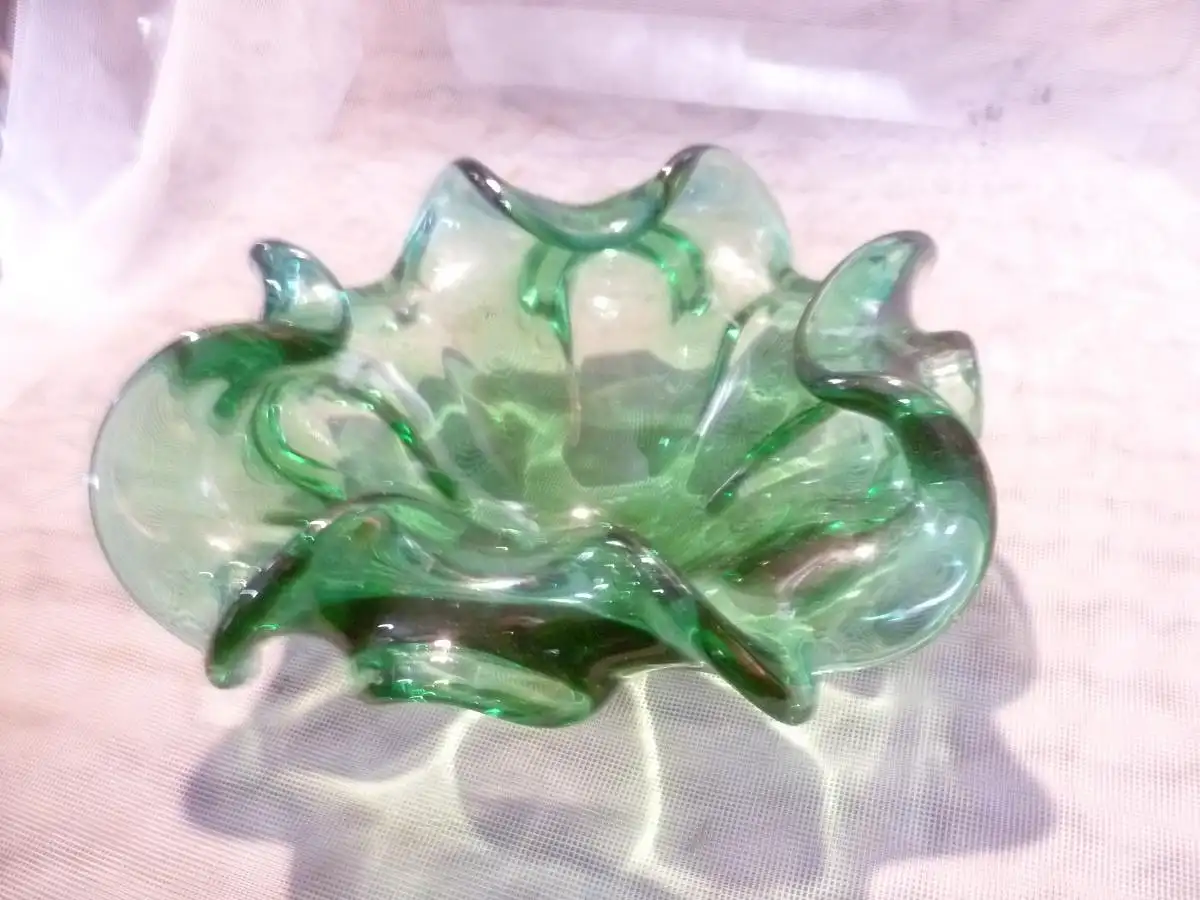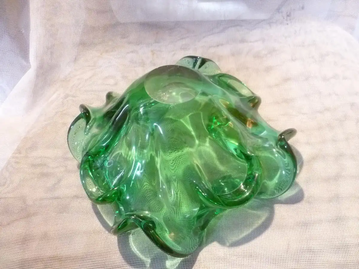 Josef Hospodka (Designer) grüne schwere Kristallglas Schale um 1960 Masse: 18 x 22 x 9 cm , sie wiegt : 1,3 Kg