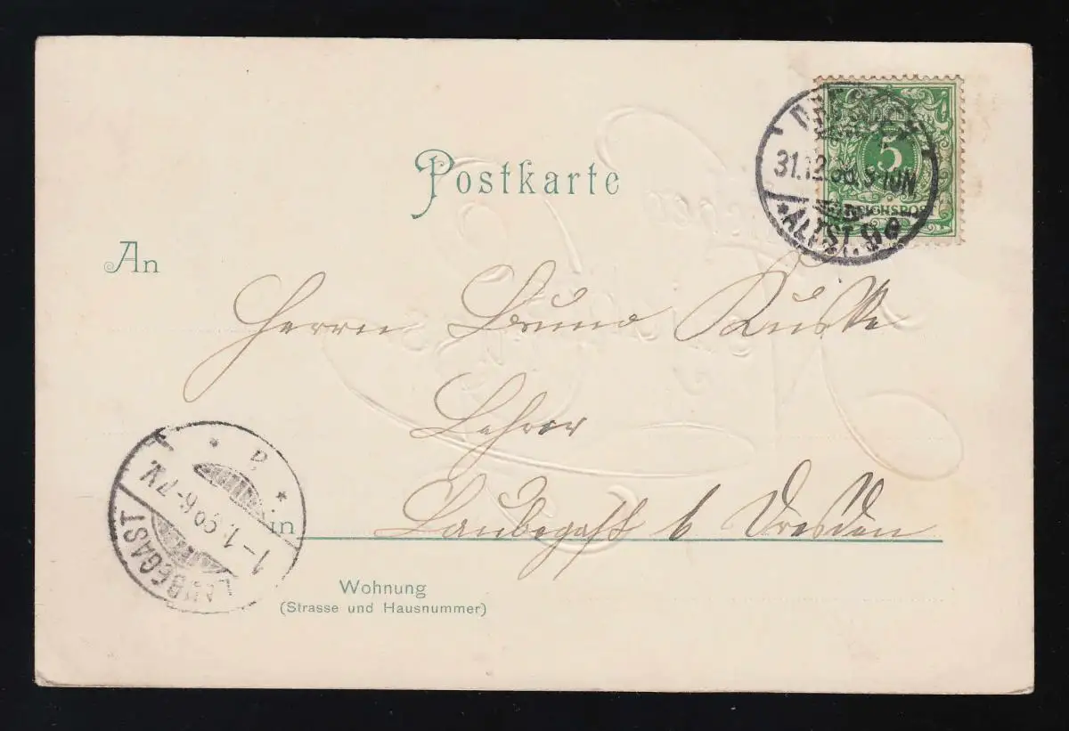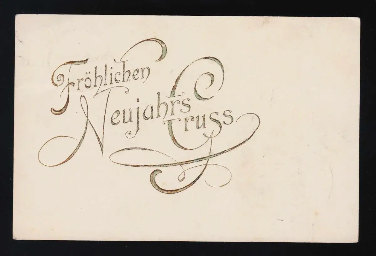 Joyeux Nouvel An Fruss Florale Écriture en or, Dresde / Laubegast 31.12.1899