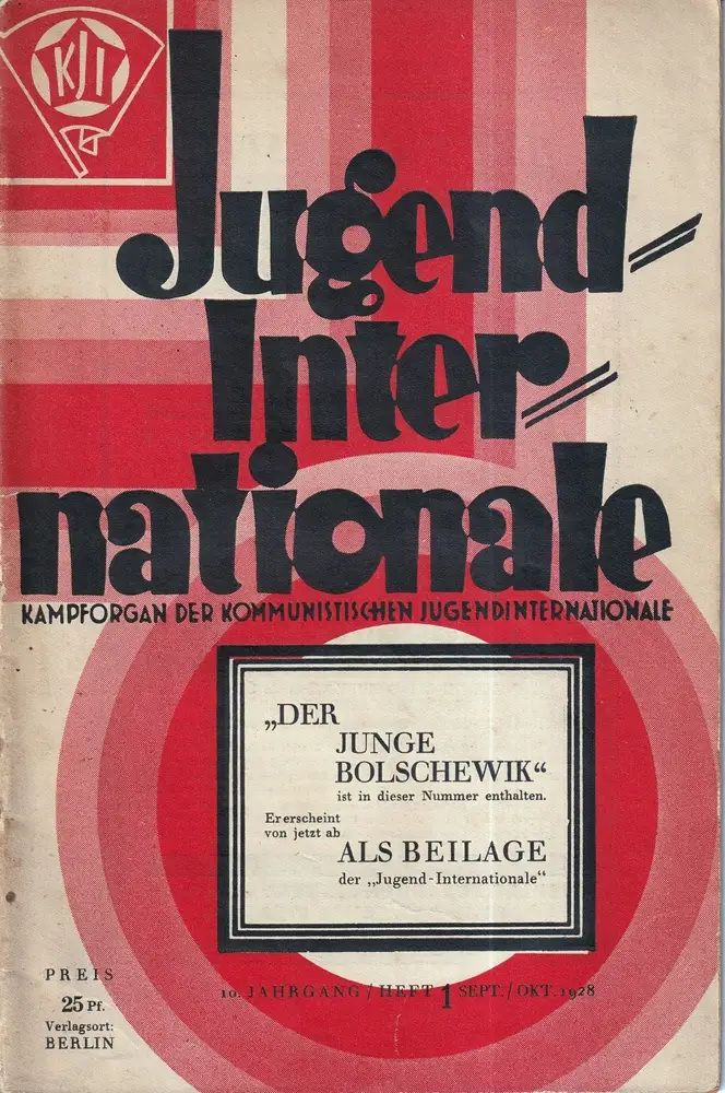 Erscheinungsweise monatlich.Verantwortlich: Hermann Remmerle. Mit dem vorliegenden Heft begann die Zusammenlegung mit "Der junge Bolschewik", dem Funktionärsorgan des Kommunistischen Jugendverbandes Deutschlands. - Inhalt: Ergebnisse des VI. Kongresses der Kommunistischen Internationale, Der "Friedenskongreß" der Jugend in Holland, die Lage der holländischen und der polnischen Arbeiterjugend u.a.- DARIN (ab S. 31: "Der junge Bolschewik". Zeitschrift für Theorie und Praxis der Kommunistischen Jugendbewegung. Hrsg. v. ZK des KJDV. - Umschlag tls. gebräunt/stockfleckig
