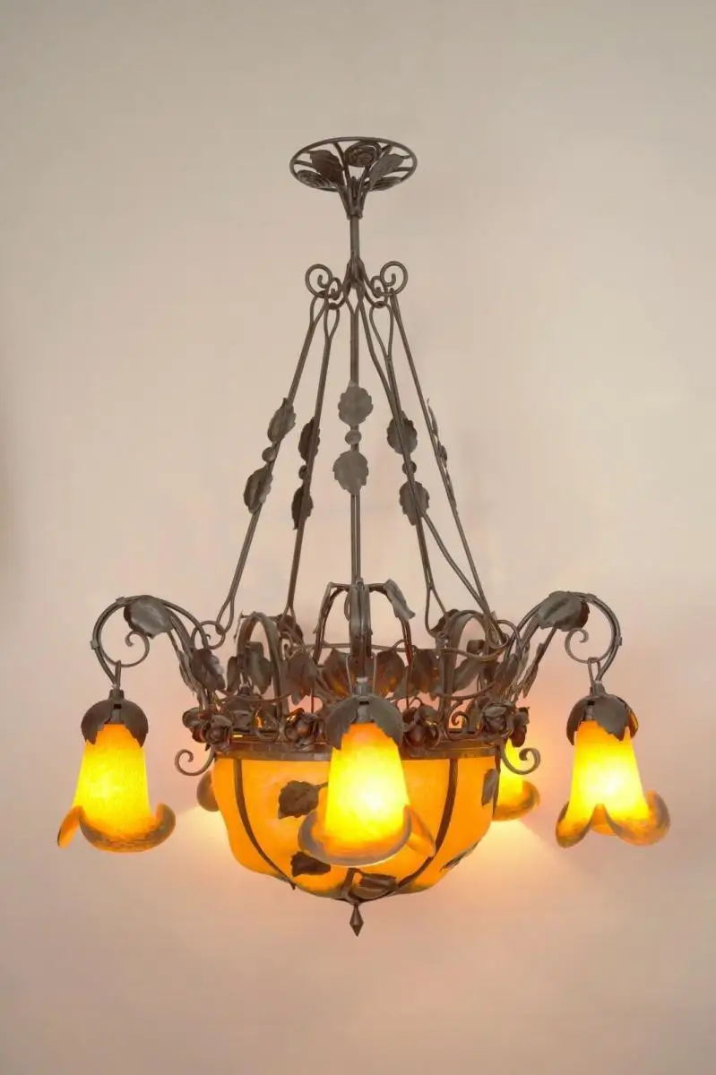 Lampe de style Art Nouveau Lustre Lumières de plafond Pate de Verte Luchter Fer forgé