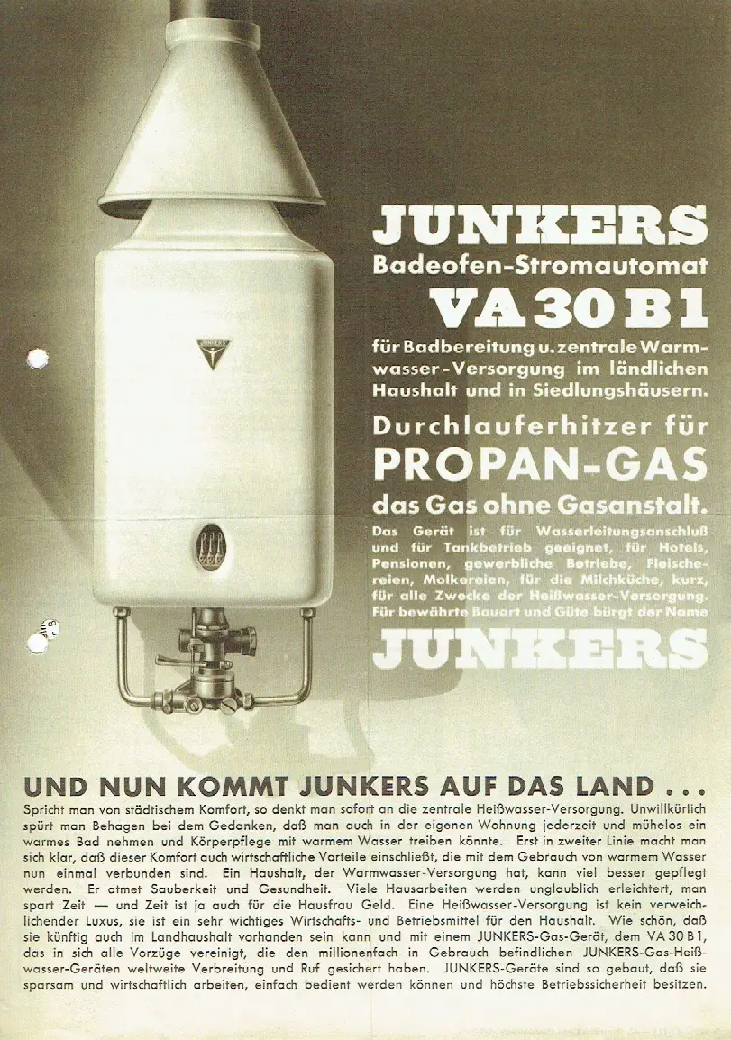 Junkers Badeofen-Stromautomat VA 30 B1 Propan-Gas-Durchlauferhitzer.