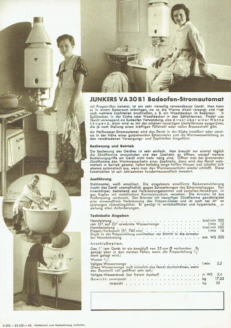 Titel: Junkers Badeofen-Stromautomat VA 30 B1 Propan-Gas-Durchlauferhitzer