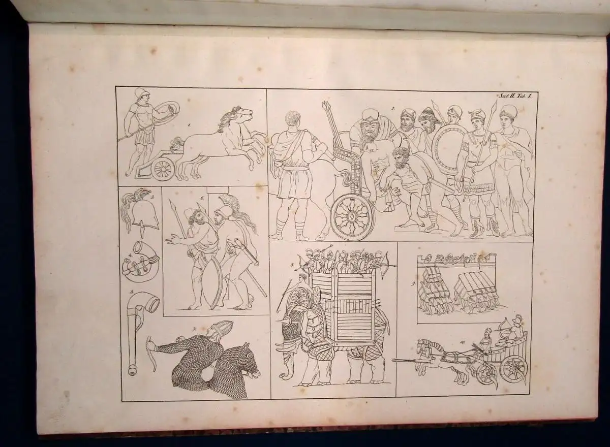 1 Bl., 13 Taf., 1 Bl., 14 Taf.,(so komplett), 1 Bl., 11 Taf., 1 Bl., 12 Taf., 1 Bl., 12 Taf.; Halbleder, Folio Ausgabe