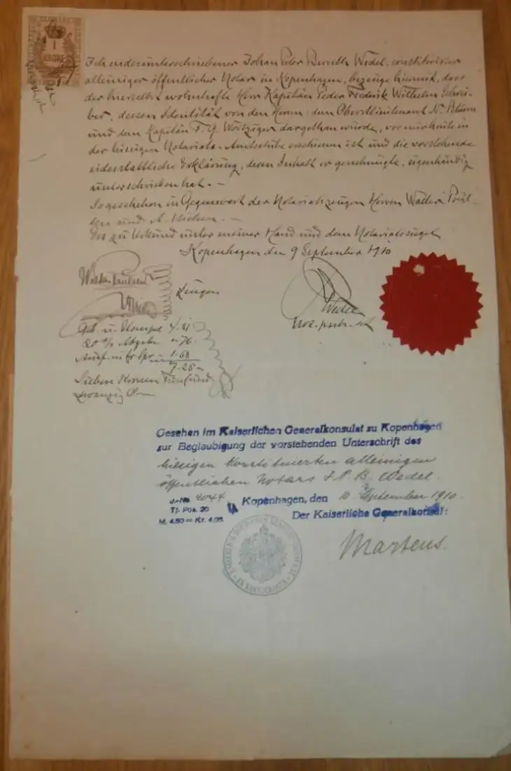 Kaiserliches Konsulat Kopenhagen - 1910 , Kapitän Schreiber , Ostsee , Seefahrt , Schiffahrt , Schiffe , Schiff !!AZ-WR/1o