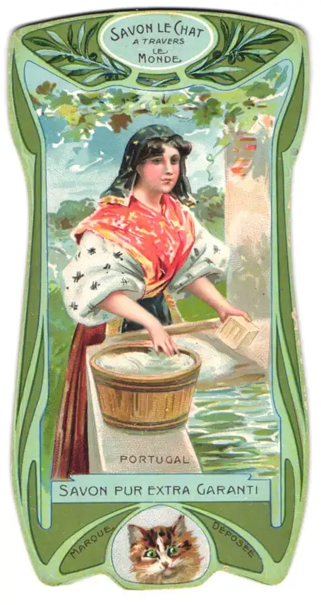 Kalender 1904, Savon le Chat, Portugiesin in Tracht beim Waschen