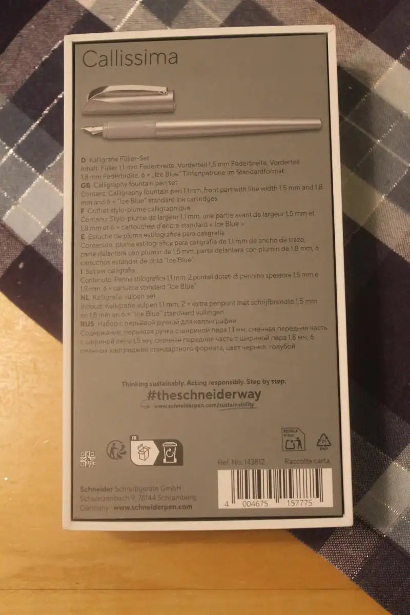 Neues vierteiliges Markenschreibset der Firma Schneider, Made in Germany mit 3 Schreibspitzen (1,1; 1,5 und 1,8 mm Federbreite) und 1 Schachtel Tintenpatronen. FFH in der Farbe anthrazit-metallic.