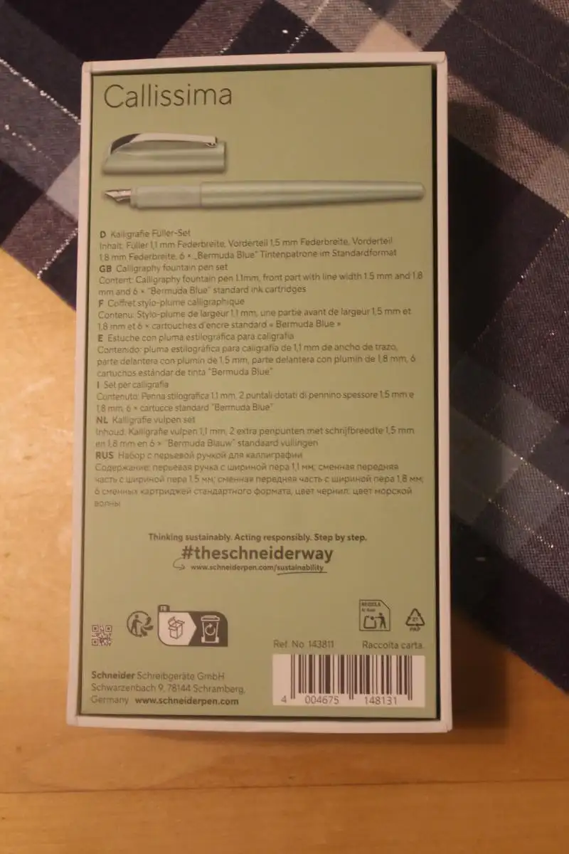 Neues vierteiliges Markenschreibset der Firma Schneider, Made in Germany mit 3 Schreibspitzen (1,1; 1,5 und 1,8 mm Federbreite) und 1 Schachtel Tintenpatronen. FFH in der mint-Farbe