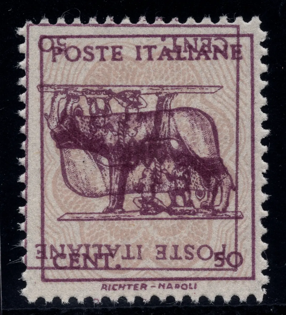 Ohne Gummi - Kapitolinische Lupe Cent. 50 n. 515Ap schönes Exemplar, ohne Wasserzeichen, mit doppeltem Druck einer umgekehrten in einwandfreiem Zustand - auffälliger und seltener Euro380 Katalog Cod.2360/WEB