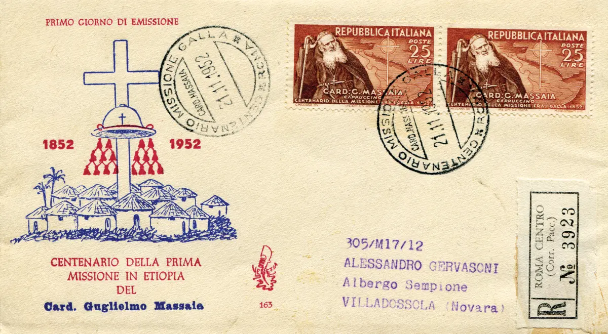 Kardinal Massaia Paar auf Einschreiben Venedig Umschlag - Kardinal Massaia Nr. 702 Paar auf Einschreiben für Novara Cod. 364/15