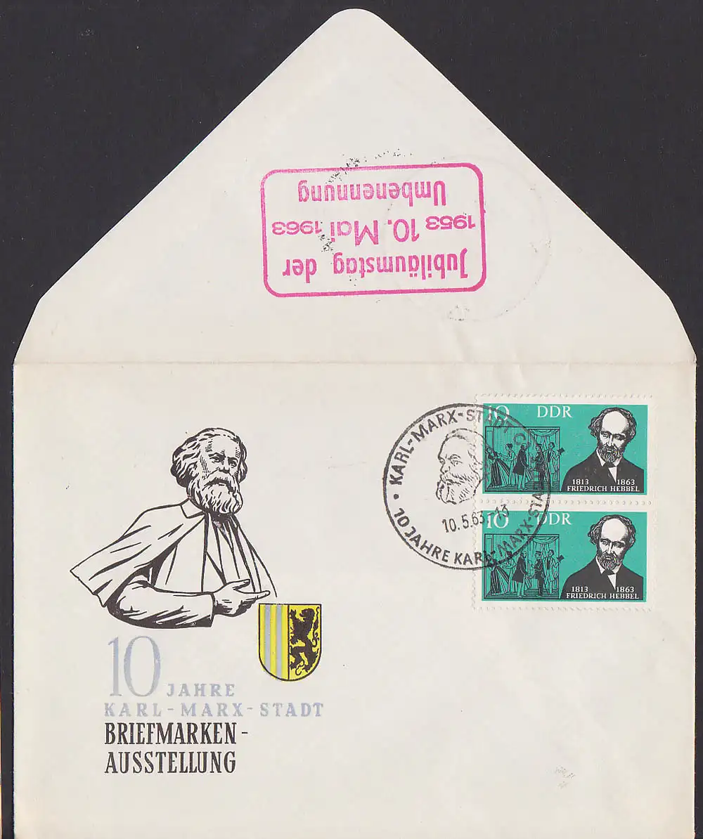 Karl-Max-Stadt - Chemnitz Schmuckumschlag mit rotem R3 Jubil?umstag der Umbenennung 1963 (dc27753-1)