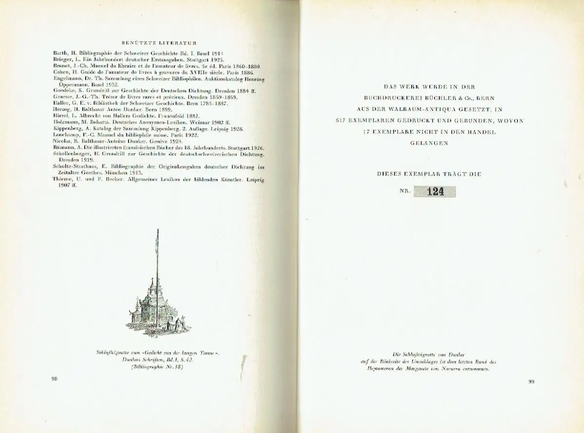 sehr guter Zustand, geringe Gebrauchs- und Alterungsspuren: Schutzumschlag gering defekt, nummeriertes Exemplar (124) - Prof. Dr. Karl Max Walthard: Der Berner Verleger Beat Ludwig Walthard und sein Werk - Dr. Phil. Adolf Burri, Bern: Die Leiden des jungen Werthers und les Malheurs de L'amour - Dr. Jur. J. O. Kehrli, Bern: Beat Ludwig Walthard und seine Berner Nachdrucke - Rechtlich Gesehen - Dr. Jur. J. O. Kehrli, Bern: Balthasar Anton Dunker und seine Schriften 1782 bis 1785 - Bibliographie - Register, kartoniert, ca. 16,5 x 24, 98 Seiten mit zahlreichen Bildern