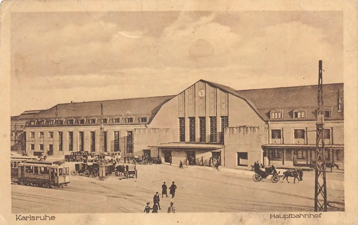 Karlsruhe Hauptbahnhof Strassenbahn Baden-Württemberg Postkarte AK 1925