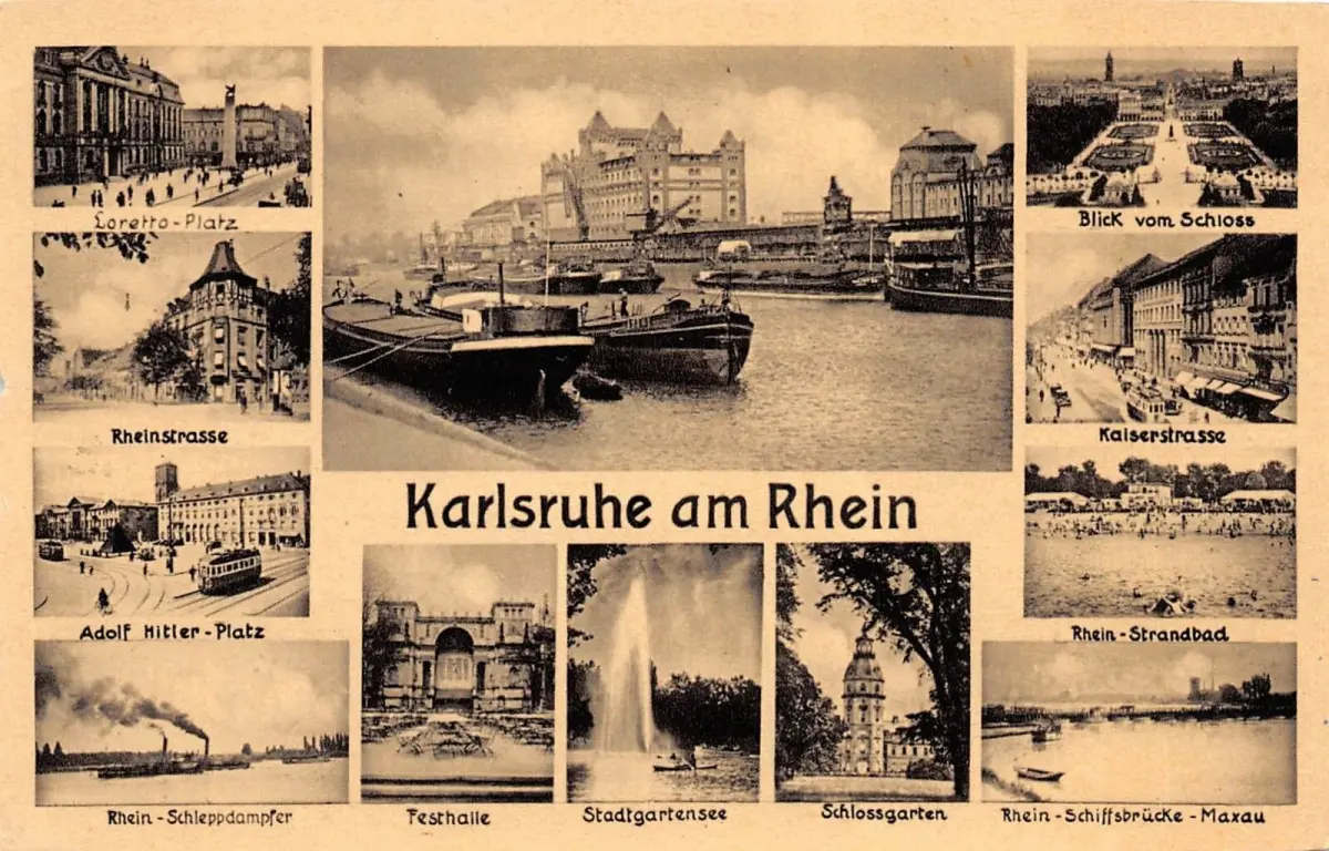 Karlsruhe am Rhein Loretto-Platz Rheinstrasse Festhalle Baden-Württemberg AK