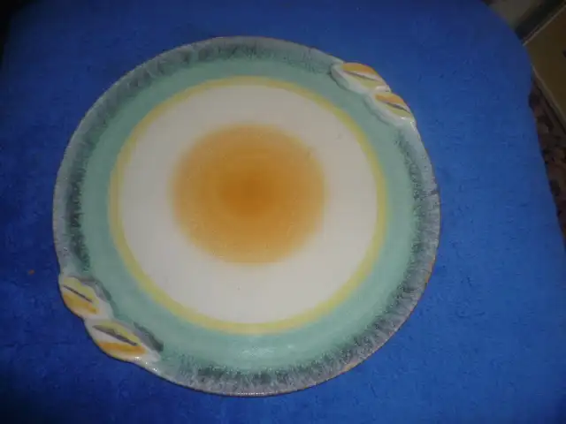 Karlsruher Mayolika Spritzdekor Jugendstil Art Deko Kuchenplatte Nr. 4048 Durchmesser :33 cm