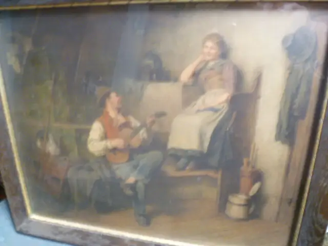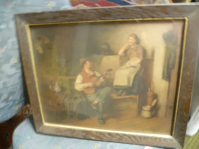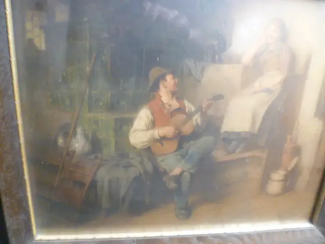 Kauffmann Hugo 1844 - 1915 " Bursch und Dirndl mit Strickzeug " oder " Das Ständchen"