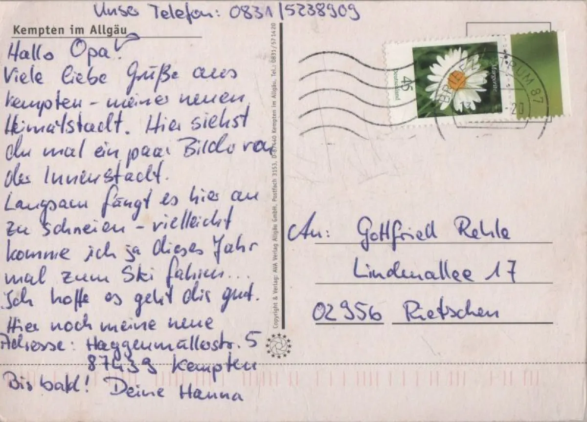 Postleitzahl:87437 (neu) / W 8960 (alt)