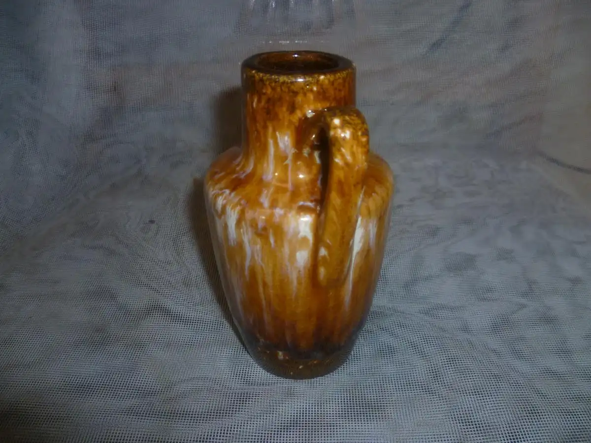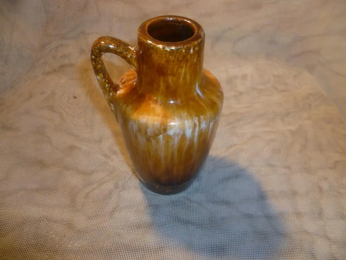 Keramik Gerda Heukeroth Vintage 1960-70 Nr. 405-13 Lauflasuren in Beige Mokka H 18 cm aus der Vitrine