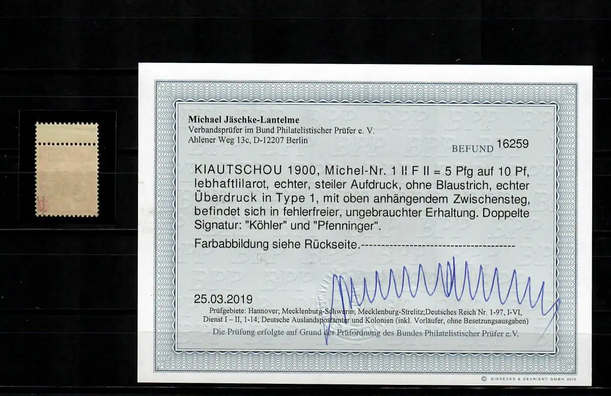 Kiaoutchou 1900: Min° 1 II FII, avec passerelle intermédiaire, non utilisée, résultat BPP