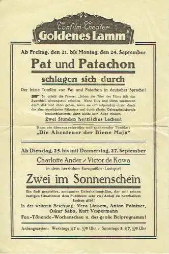 zur Datierung: "Zwei im Sonnenschein" mit Viktor de Kowa und Charlotte Ander ist von 1933, Freitag, der 21. 9. trifft auf das Jahr 1934 zu