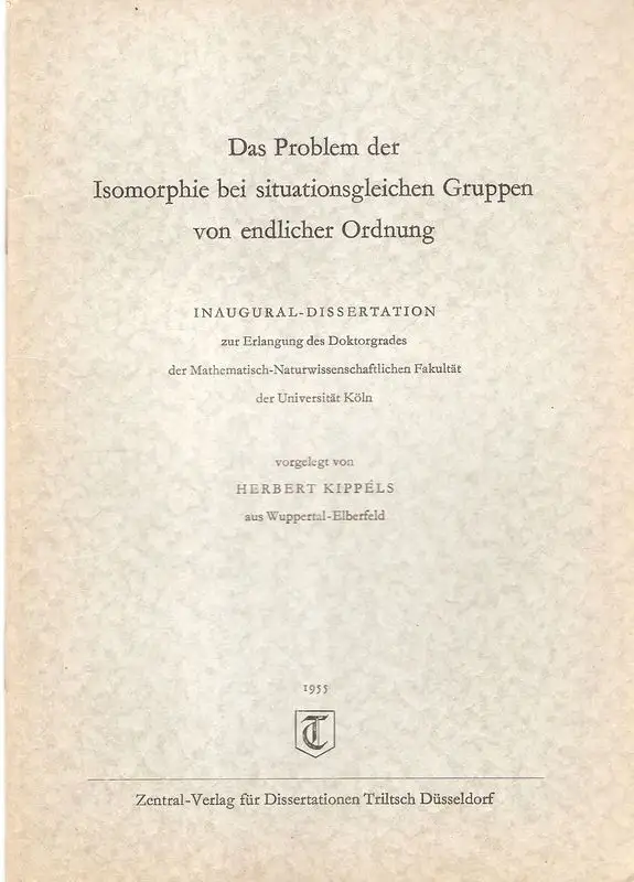 Kippels, Herbert: Das Problem der Isomorphie bei situationsgleichen Gruppen von endlicher Ordnung. (Dissertation).