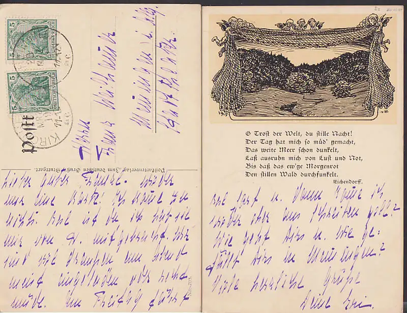 Kirchberg Altstempel mit 5 Pf. Germania geprüft IIa, mit Text v. Eichendorff O Trost der Welt…