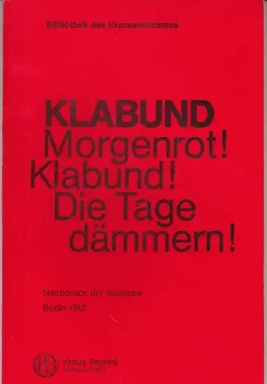 Klabund ( d. i. Alfred Henschke): Morgenrot ! Klabund ! Die Tage dämmern ! Gedichte von Klabund. - REPRINT ! ( = Bibliothek des Expressionismus ).