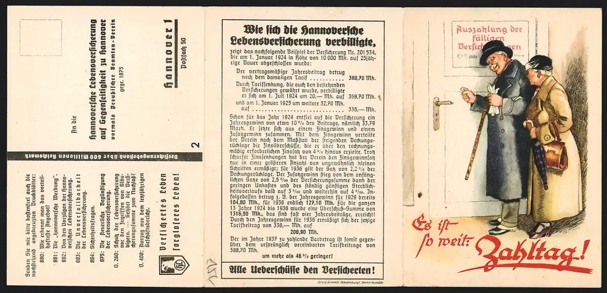 Klapp-AK Hannoversche Lebensversicherung, Älteres Paar kommt zur Auszahlung der Versicherungen