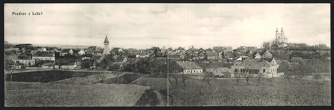 Klapp-AK Luze, Totalansicht vom Feld aus