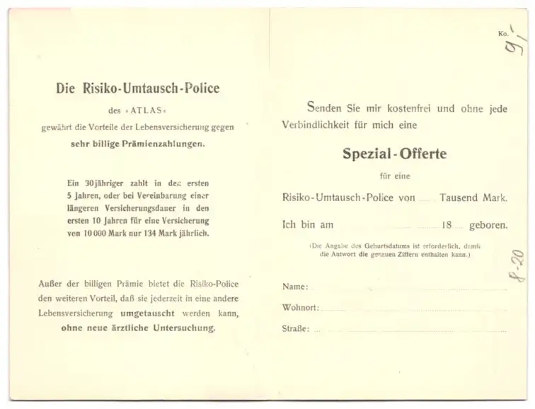 Klapp-AK Werbeprospekt der Atlas Lebensversicherungen