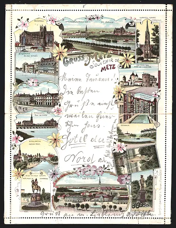 Klapp-Lithographie Metz, Kathedrale, Fesenstrasse, Theater, Garnisonkirche, Gerber-Graben, Mittelbrücke