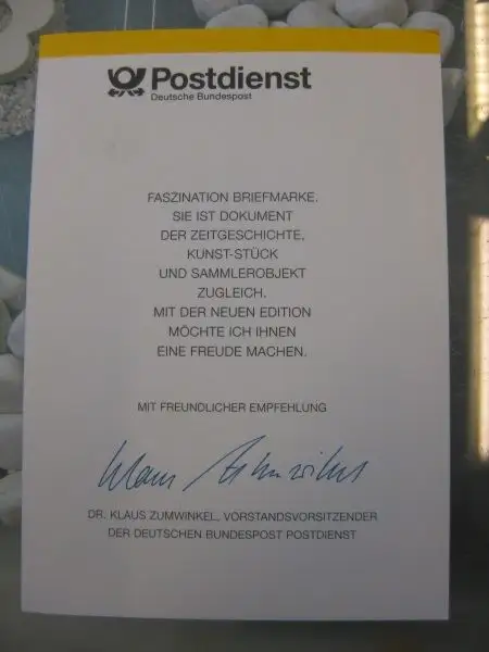Klappkarte der GD Post, Faltkarte Typ DP1, Fulda, 1994 mit Faksimile-Unterschrift Klaus Zumwinkel ; Nachfolgekarten der Ministerkarten Typ V