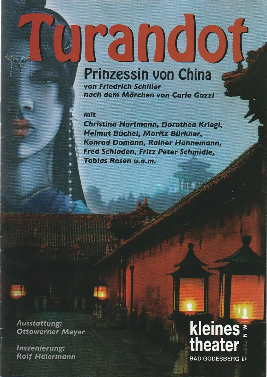 Nach dem Märchen von Carlo Gozzi. Inszenierung: Rolf Heiermann. Ausstattung: Ottowerner Meyer. Mitwirkende: Christina Hartmann, Dorothea Kriegl, Helmut Büchel, Moritz Bürkner, Konrad Domann, Rainer Hannemann, Fred Schladen, Fritz Peter Schmidle, Tobias Rosen, u.a. - Theaterprogramm, Opernprogramm, Ballettprogramm, Musicalprogramm, Konzertprogramm, Theatermemorabilia, Programmhefte Sammlung, deutsche Theatergeschichte.