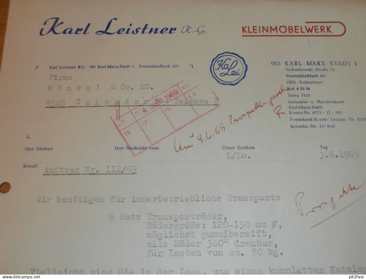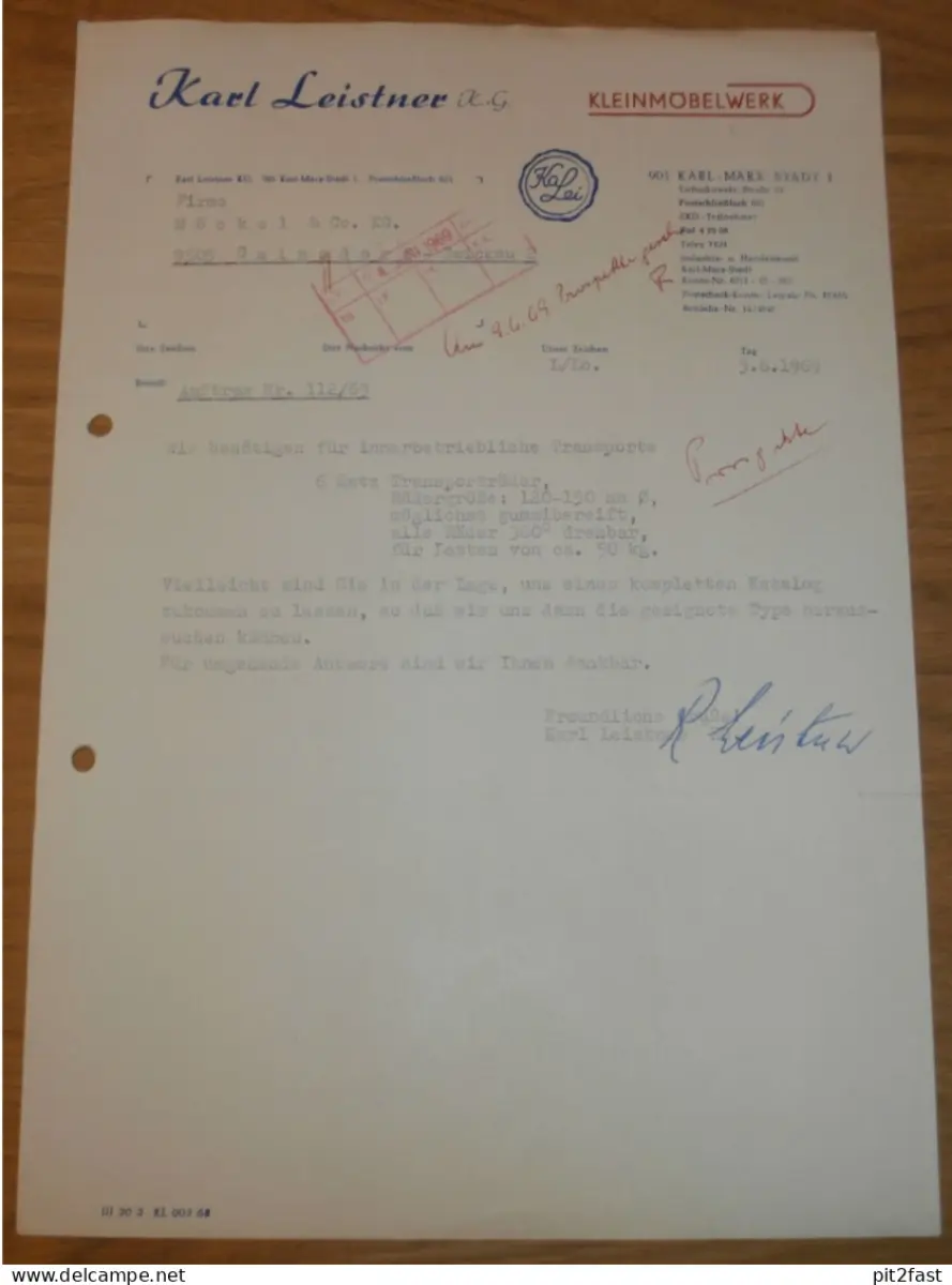 Kleinmöbelwerk - Karl Leistner KG in Karl Marx Stadt , 1969 , altes Dokument , Reklame / WerbungAZ-WR/2m