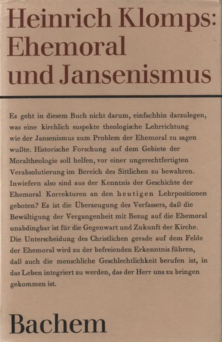 Klomps, Heinrich: Ehemoral und Jansenismus. Ein Beitrag zur Überwindung des sexualethischen Rigorismus.