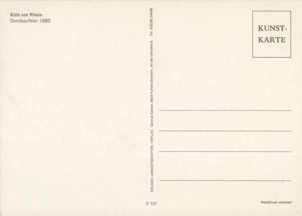 Postleitzahl:50931 (neu) / W 5000 (alt)